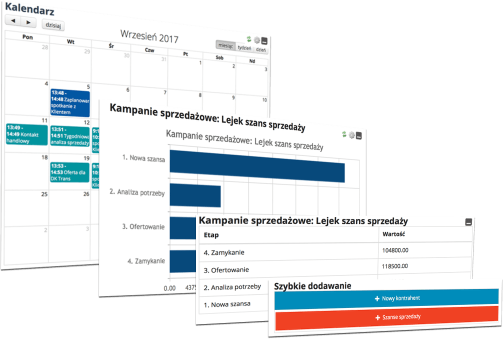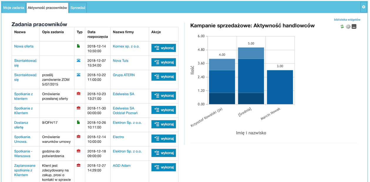 Jeśli codziennie analizujesz raporty — wyświetl je na swoim pulpicie. Jeśli chcesz, aby handlowiec miał pod ręką np. kalendarz czy listę zaplanowanych zadań — możesz zaprojektować jego pulpit tak, jak uznasz za stosowne.